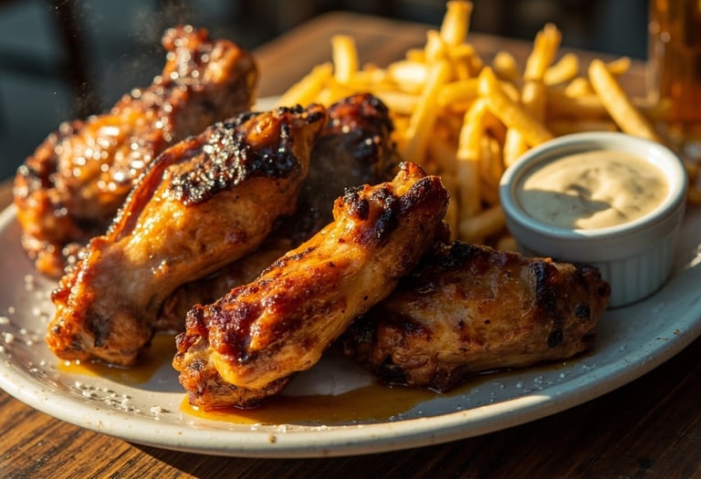 Marinated grilled chicken wings.